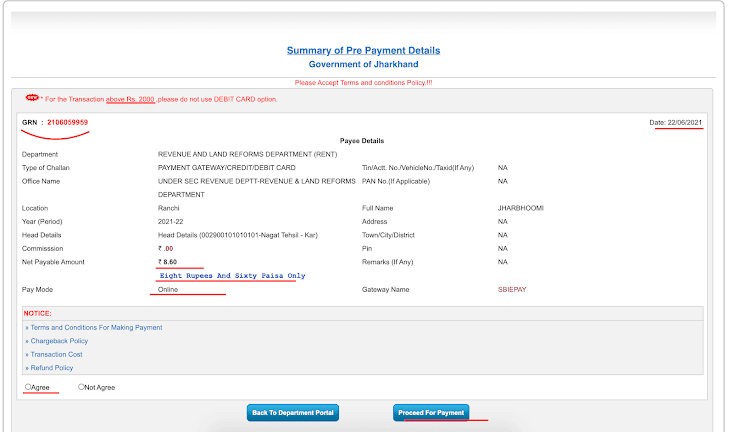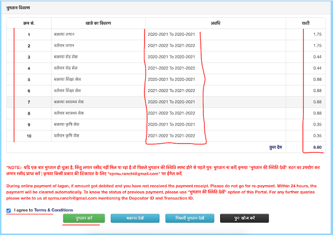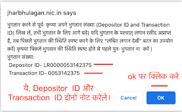 स्टेप-8 : आपके सामने एक नया पेज खुल के आयगा आपको सबसे निचे आना है और I agree Terms & Conditions पर टिक करे, जैसे टिक करेंगे आपके पास एक पॉप अप बॉक्स आएगा, आप Deposite ID और Transaction ID नोट कर ले या फिर Screenshot ले लीजिए, पेमेंट फेल होने पर कम आ सकता है, उसके बाद भुगतान करें पर क्लिक करना है. जैसे निचे फोटो में है.