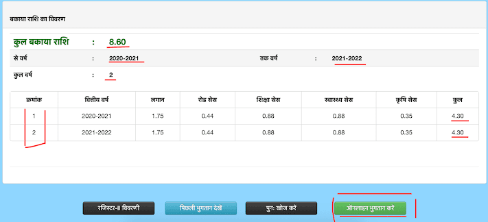 स्टेप-7: आपके सामने एक नया पेज ओपन होगा जिसमे आपना पूरा details और बकाया राशी देख सकते है. आपको निचे जाना है और ऑनलाइन भुगतान करें के आप्शन पर क्लिक करना है. जैसे निचे फोटो में है।