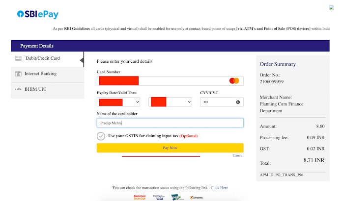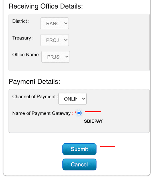 स्टेप-9 : आप किस चीज से पेमेंट करना चाहते है उसे सेलेक्ट कर, Submit पर क्लिक करना है जैसे निचे फोटो में है.