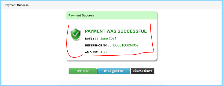 स्टेप-13. : आपके पास Success का screen आएगा, अगर अप रसीद का प्रिंट लेना चाहते है तो लगान रसीद पर क्लिक करे।