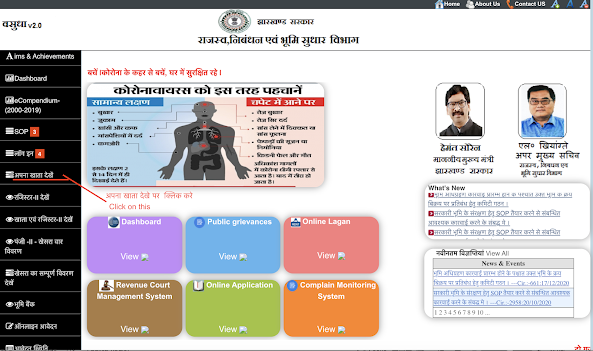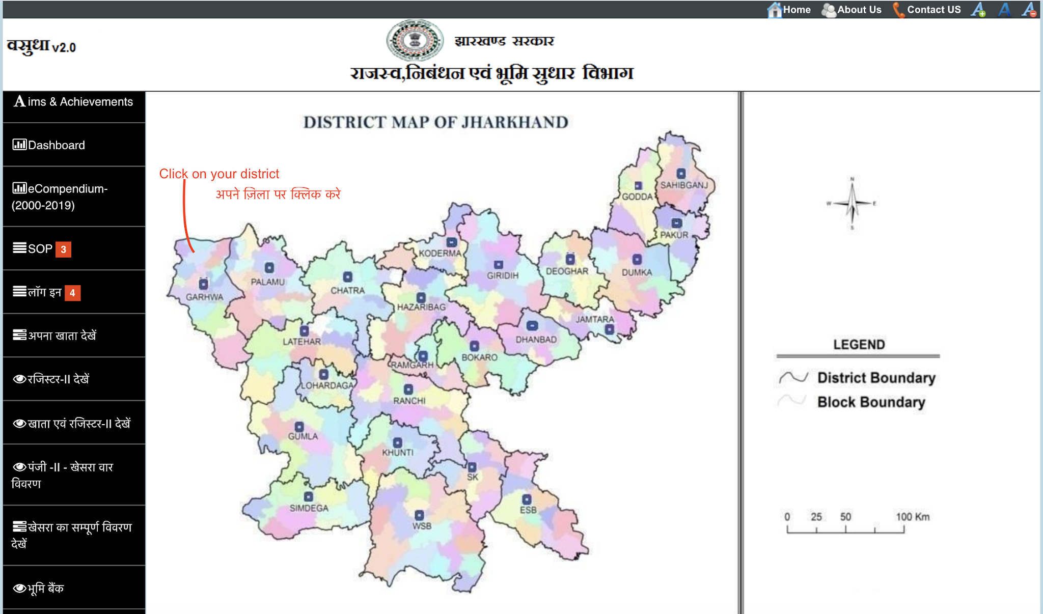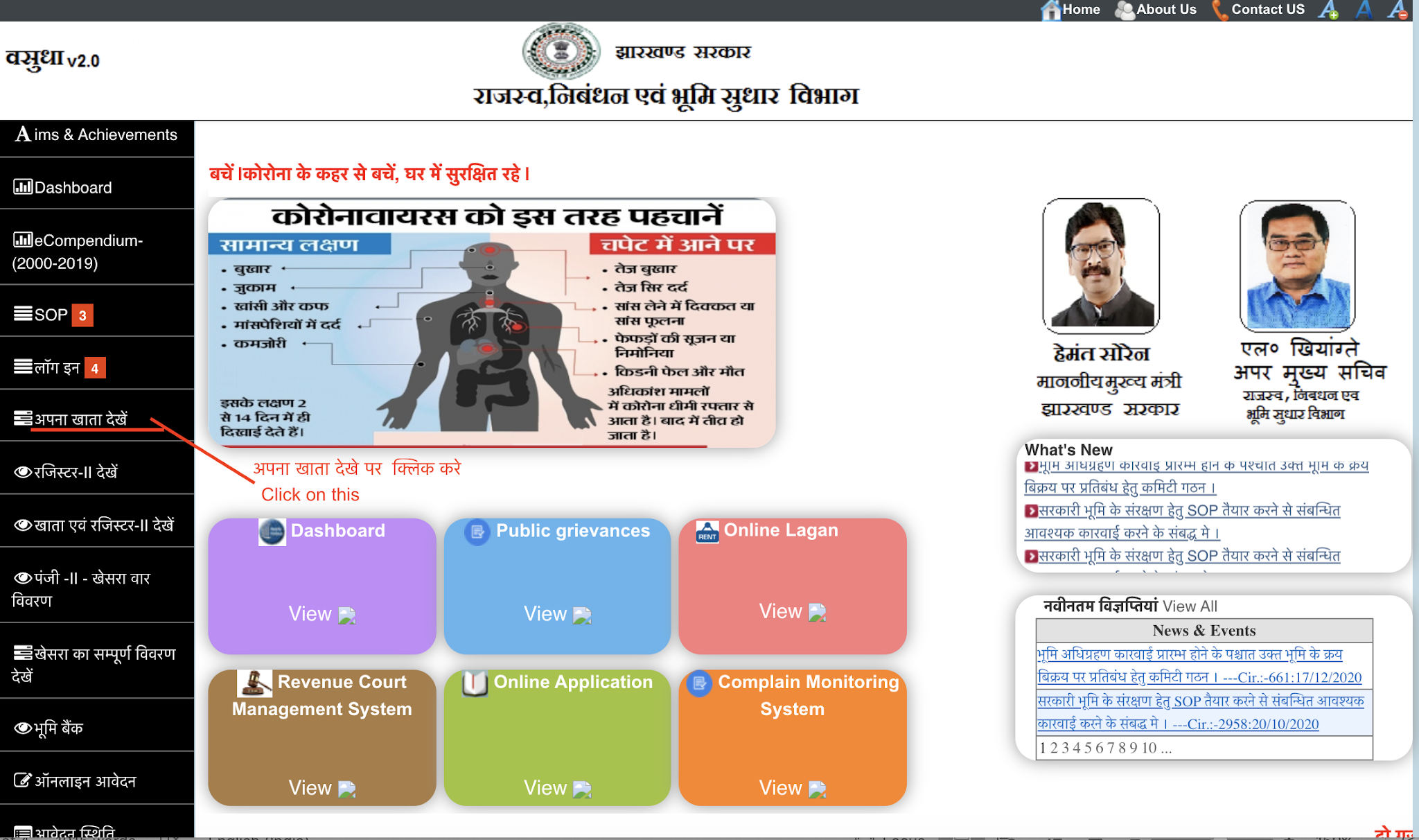 अब हमलोग झारखंड राज्य के भूमि बिभग के वेबसाएट पर जाकर एक उदाहरण से अपने खाता के जानकारी लेते हैं