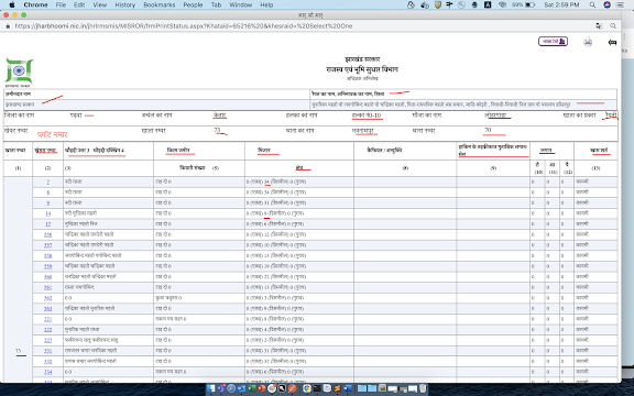 नीचे के स्क्रीन्शाट में आप देख सकते है खतियान किस प्रकार का दिखता हैं।
